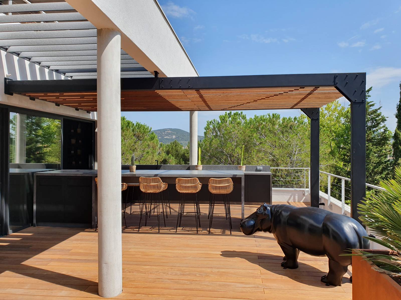 Aménagement de terrasses extérieures avec cuisine d'été et pergola à Hyères : encore une belle réalisation, que l'équipe d'Ag2bat Concept, entreprise du bâtiment tous corps d'état, est fière de vous présenter.