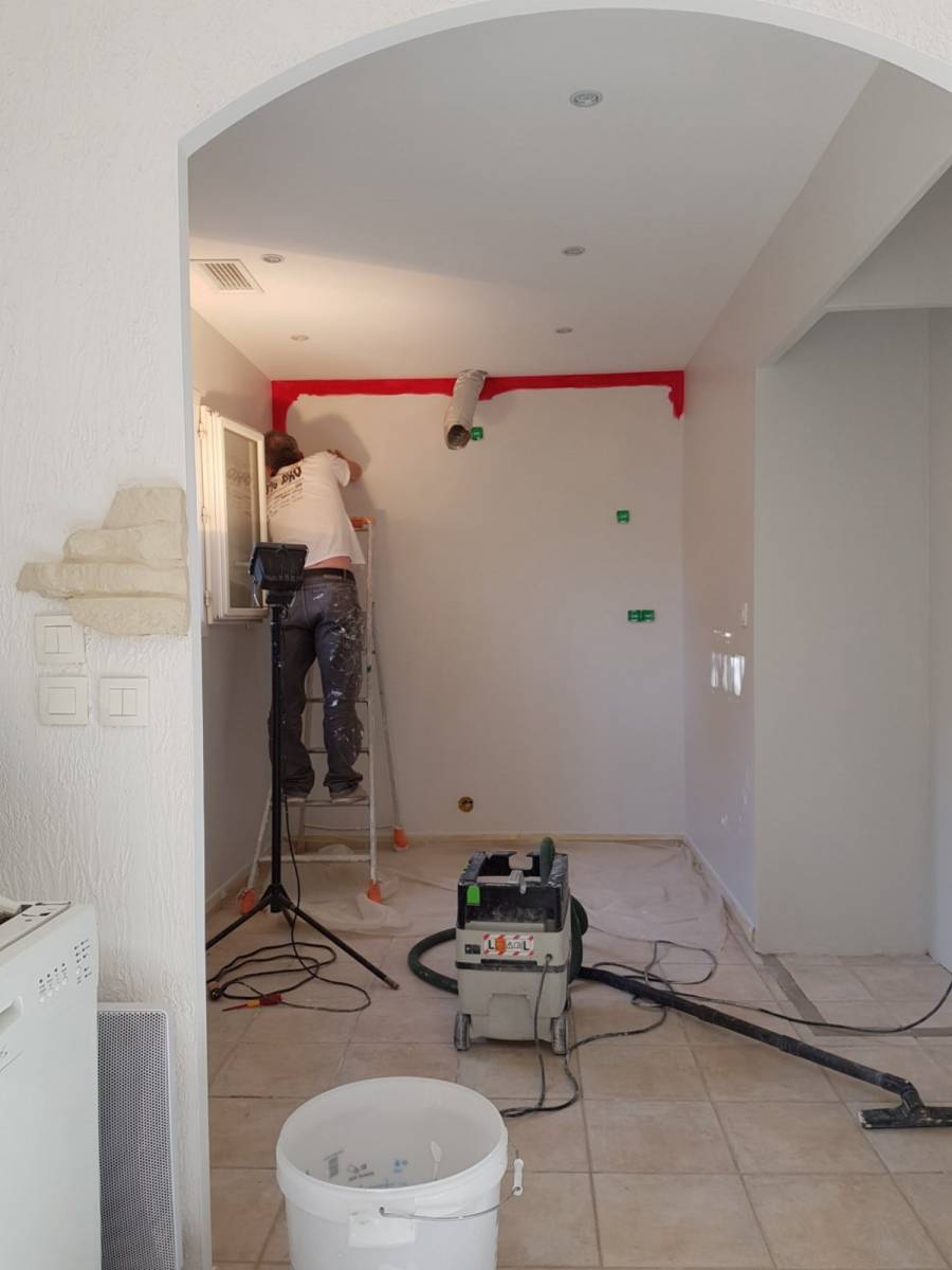 Rénovation d'une cuisine avant son nouvel aménagement, les travaux entrepris ont concerné des :