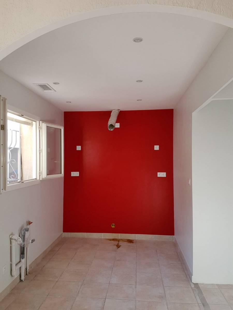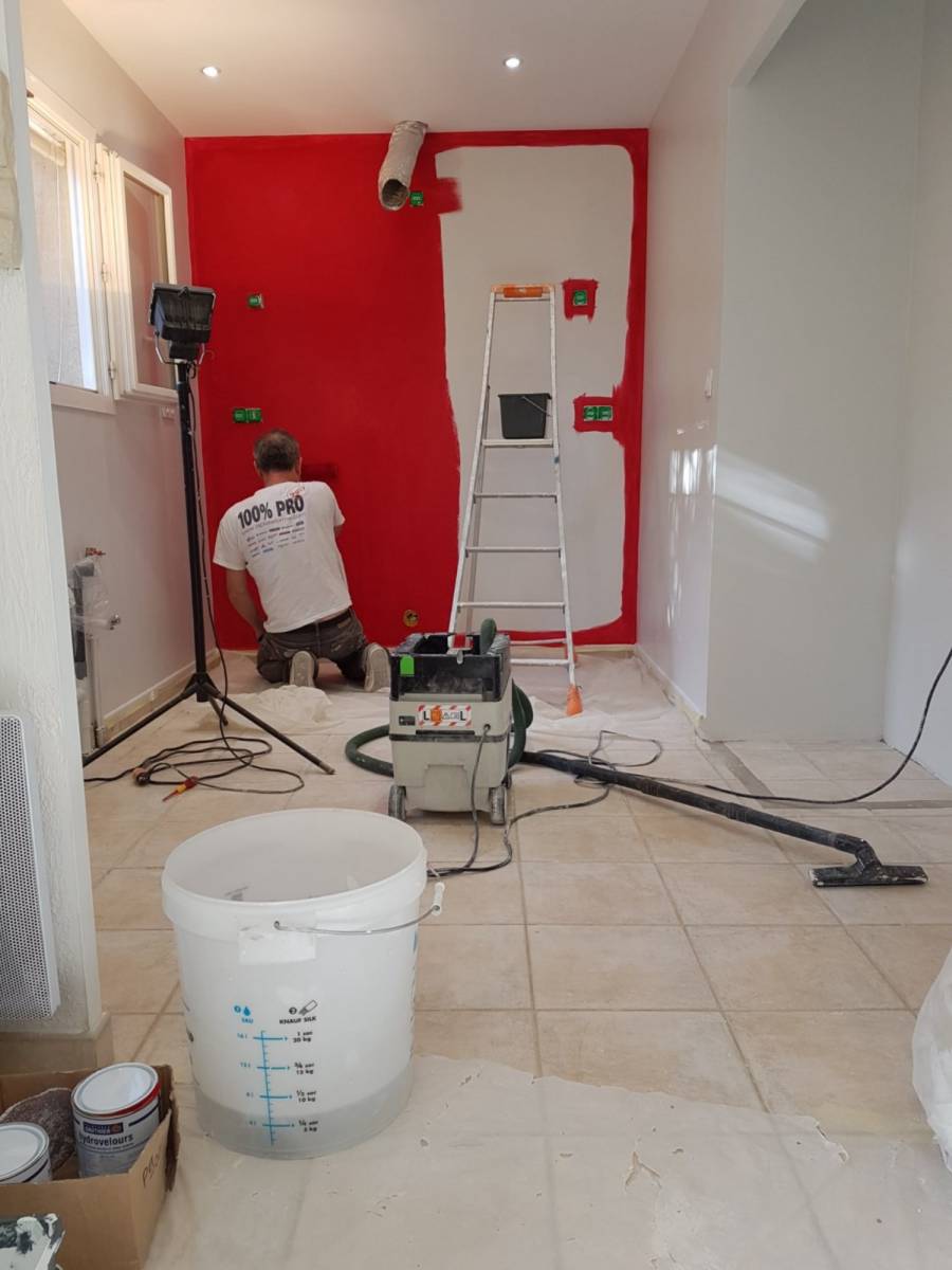 - Finition peinture rouge sur un pan de mur