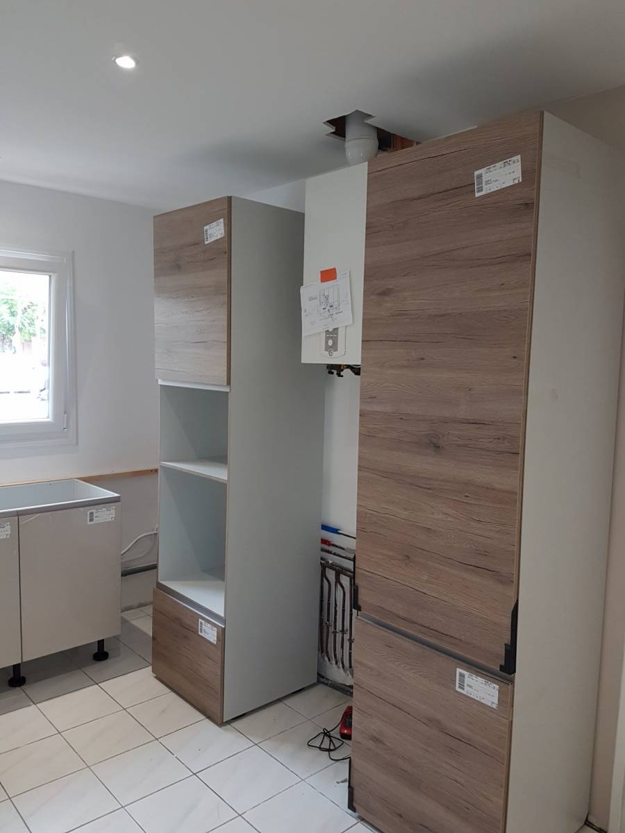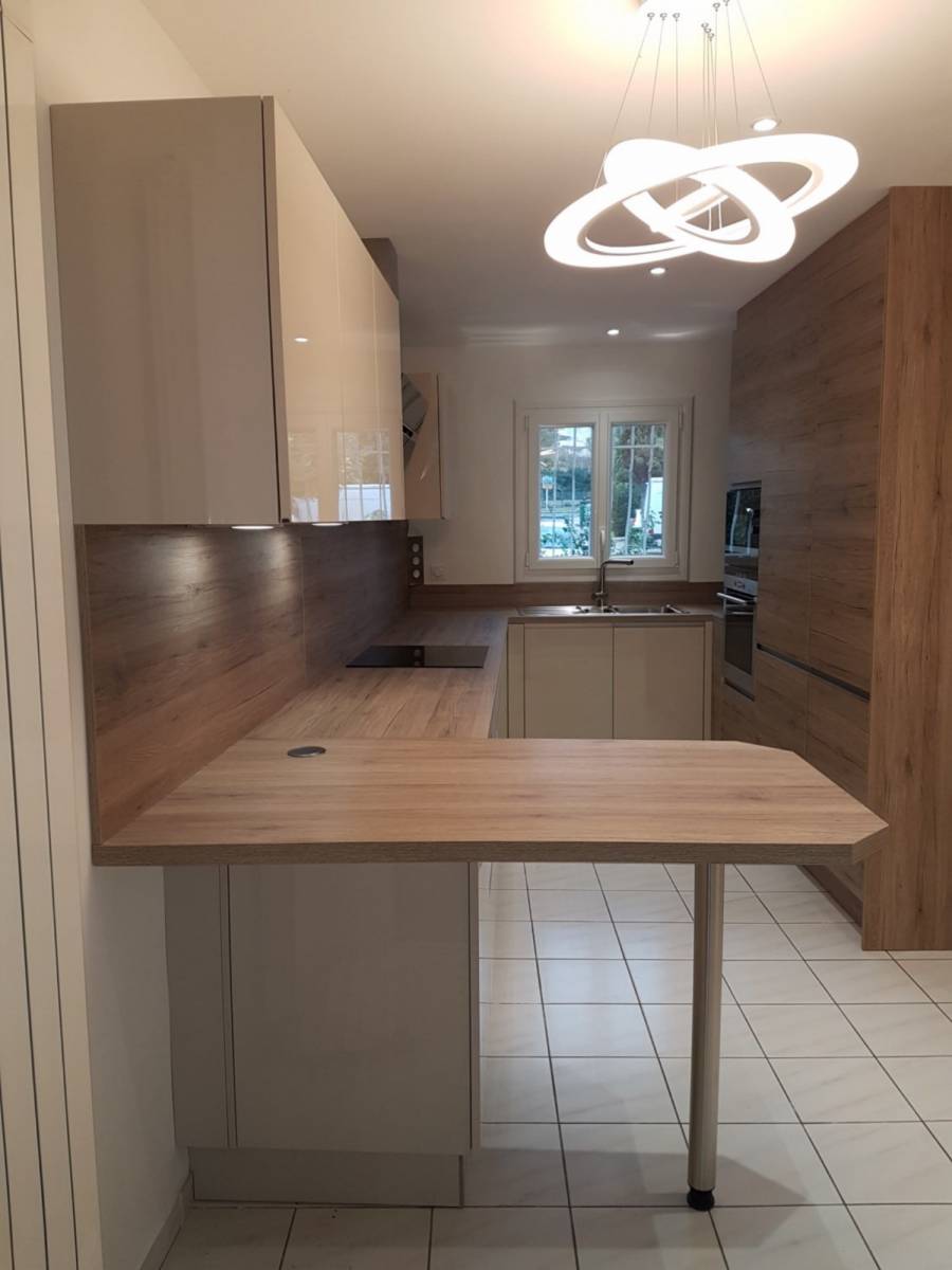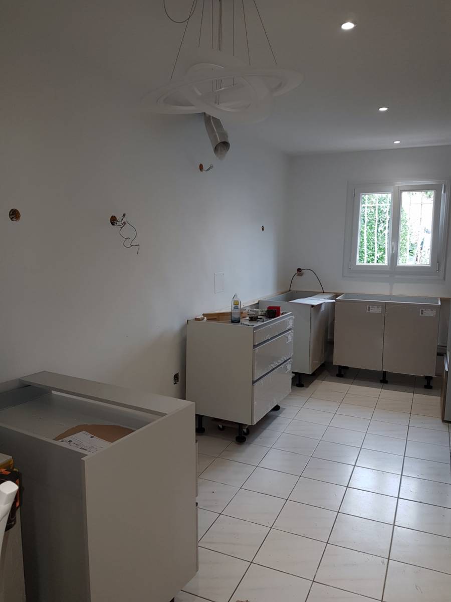 Après une démolition soignée de leur ancienne cuisine et une remise a neuf des réseaux d'eau potable , d'évacuation et mise aux normes électriques avec la nouvelles implantation de leur cuisine sur mesure ,c'est avec une grande joie et satisfaction que nos client ont vu ce concretiser ce pourquoi ils nous avez confier la réalisation. Véritables créateurs d'ambiance, dans le respect de votre budget, nous vous conseillons quant au meilleur choix de cuisine sur mesure à faire ; et si vous le souhaitez, nous pouvons aussi, vous orienter vers nos partenaires cuisinistes, choisis avec soin, pour la qualité et la fiabilité de leurs cuisines.
