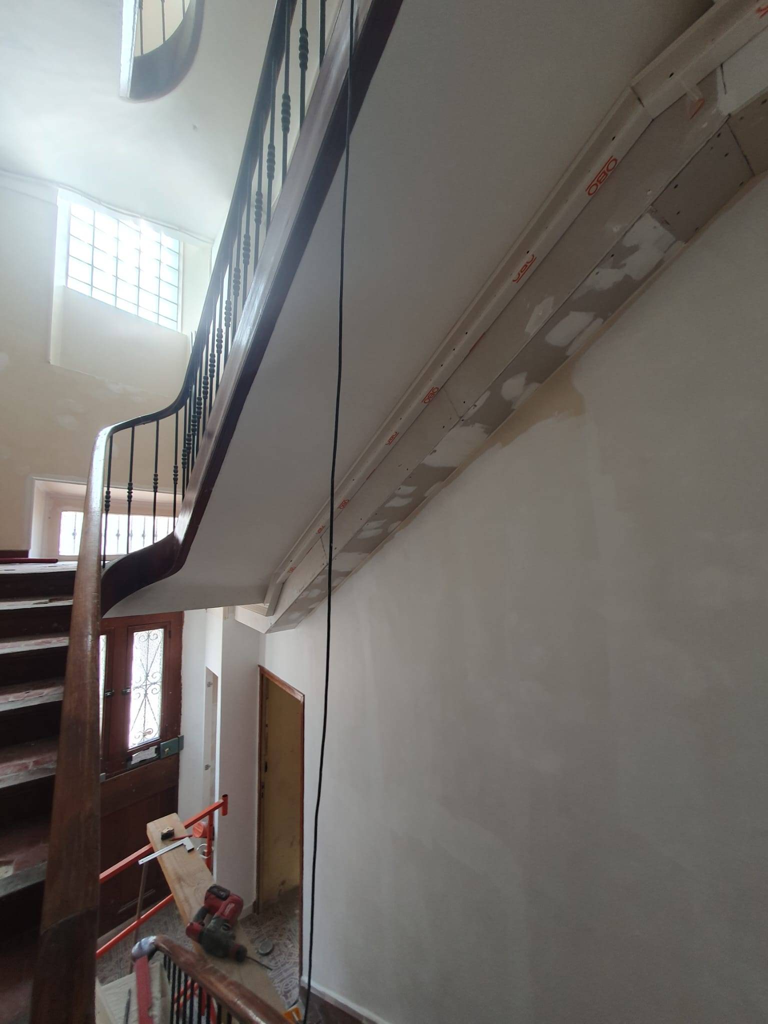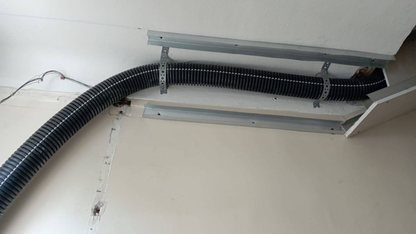 - Acheminement des gaines par goulottes et coffrage en plaques de plâtre vers chaque appartement (téléphonie, fibre et interphone)