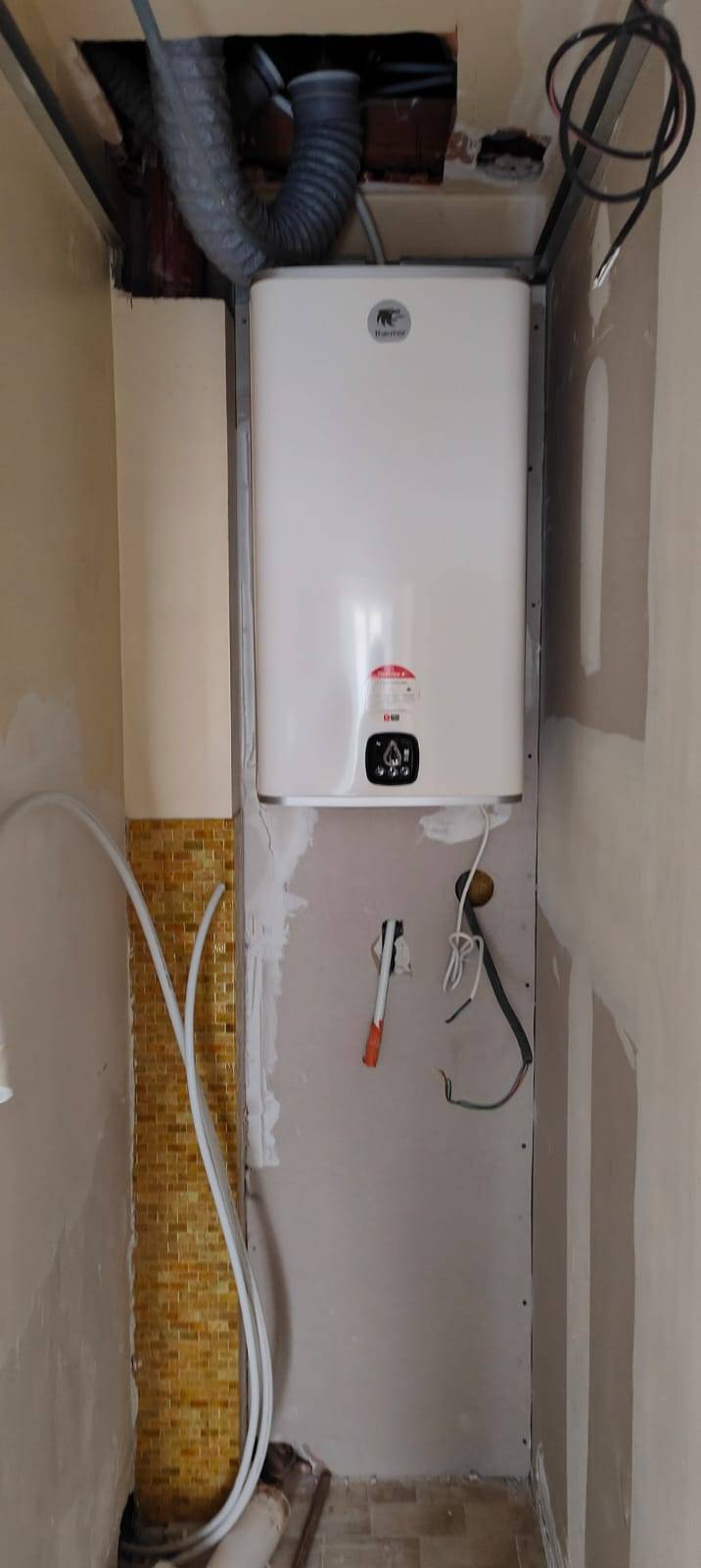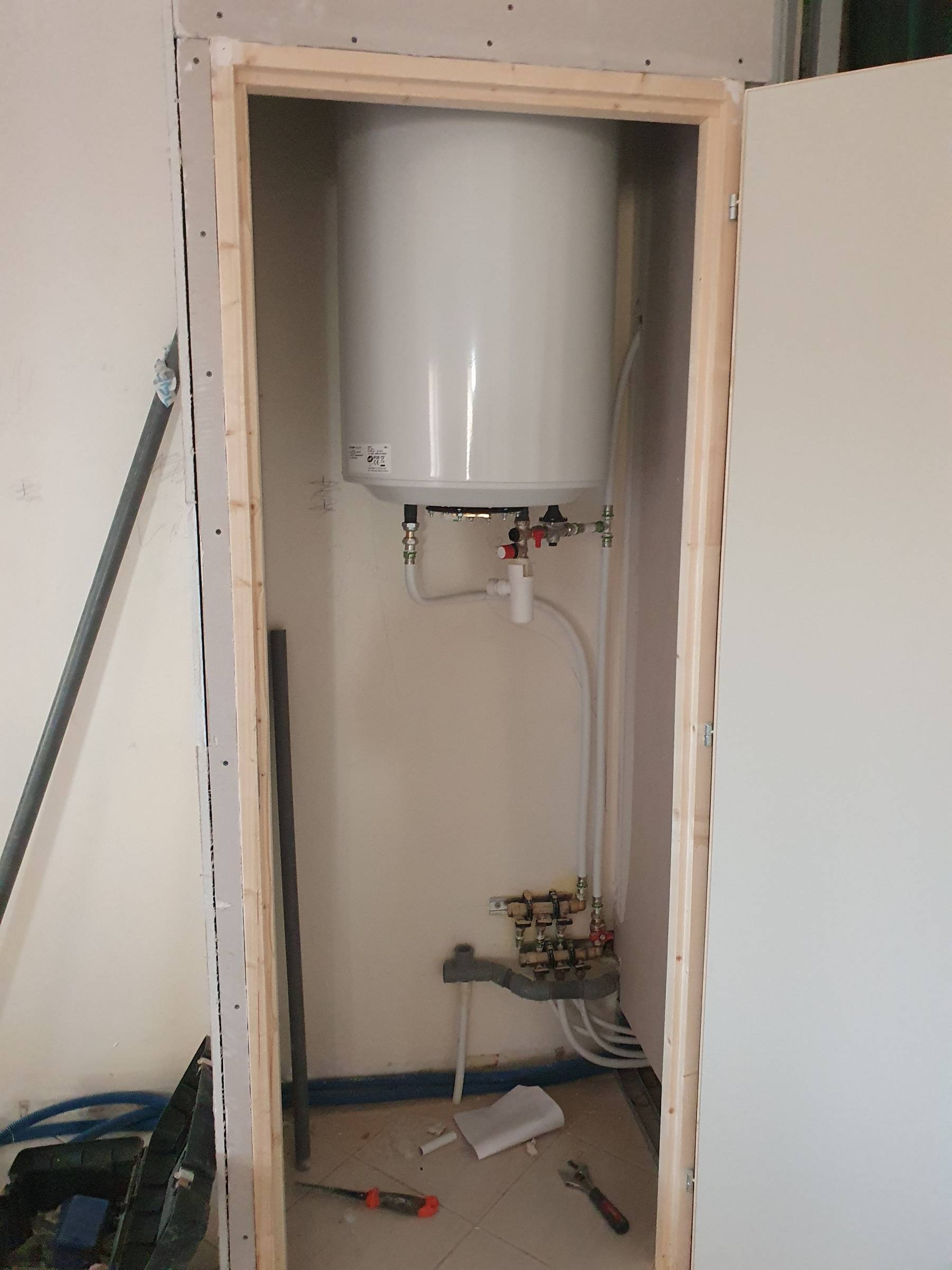 Pose de cumulus plats (gain de place) et cumulus cylindriques (achat plus économique), en fonction de la configuration et espace disponible dans chaque T2 et T3, nous avons opté pour la meilleure solution ; des équipements de confort faciles à installer, qui ont nécessitent une arrivée d'eau et un raccordement électrique.