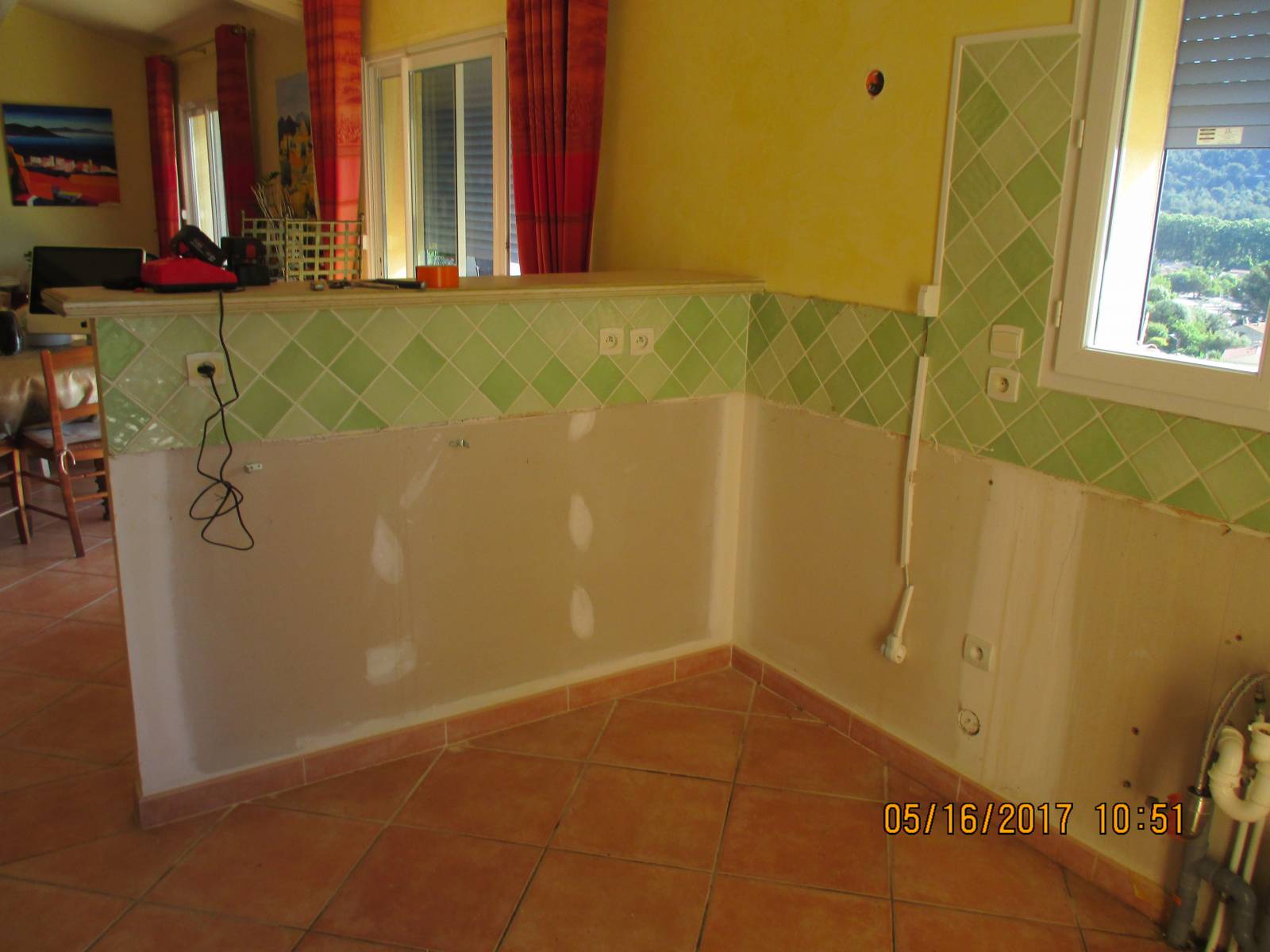 - Démoli la hotte, le muret (10 cm d'épaisseur) et plan de travail