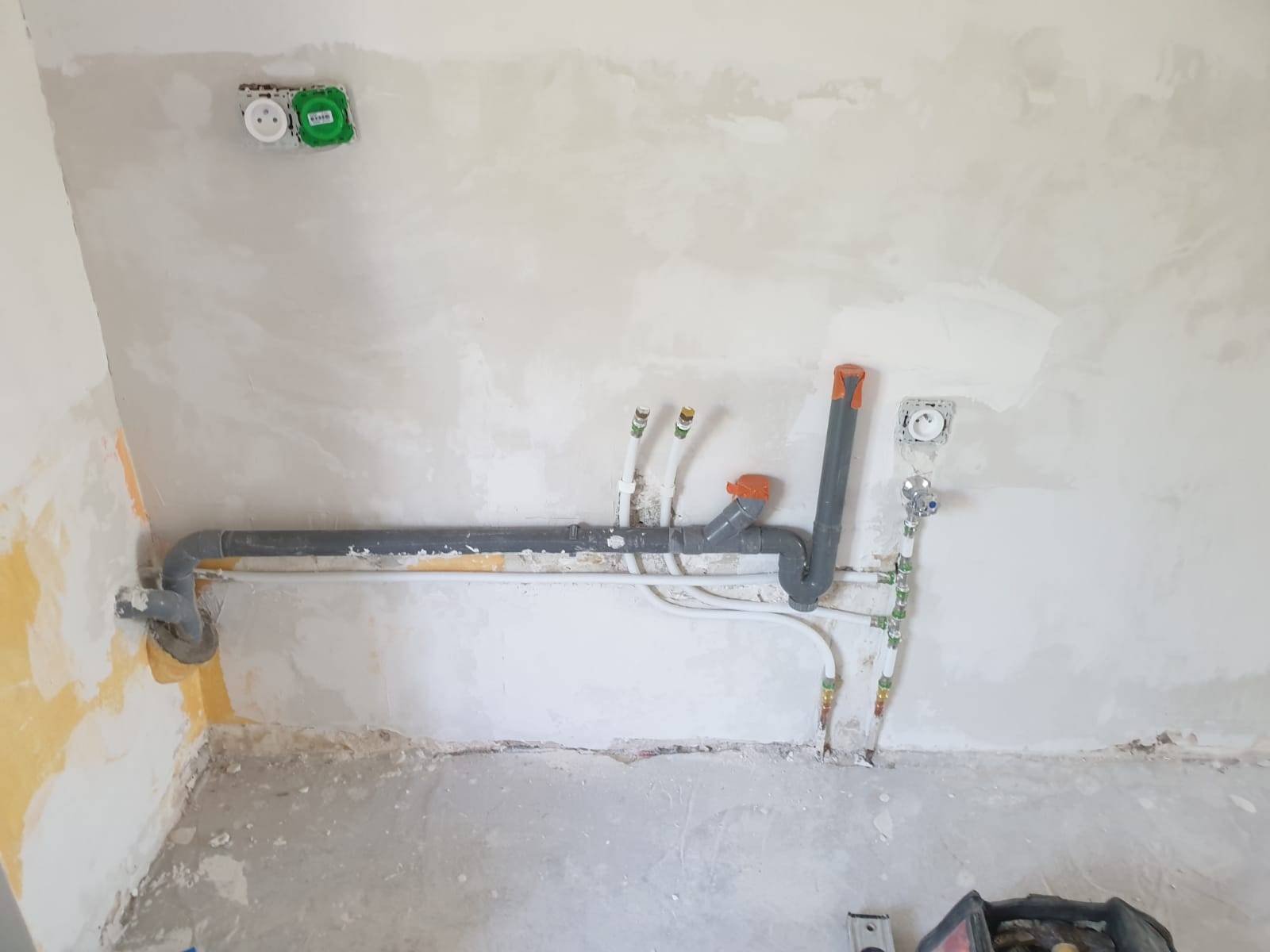 - Réagencement de la cuisine : déplacement du lave-linge pour intégrer un lave-vaisselle, nous avons ouvert le bas du mur quant à passer la tuyauterie (arrivée et évacuation des eaux) et raccorder l'appareil ménager.