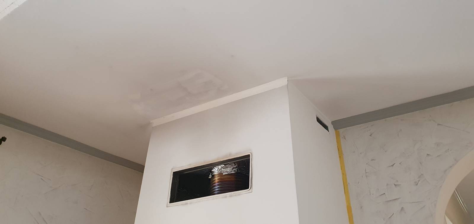 Il est bien agréable de se retrouver l'hiver, devant la beauté des flammes d'une cheminée. Mais au fil des années, inévitablement le plafond se retrouve être noirci. Jamais repeint depuis la construction de votre maison, l'apparition de quelques bandes, causée par une légère infiltration, vous pousse à faire repeindre le plafond de la salle-à-manger ?