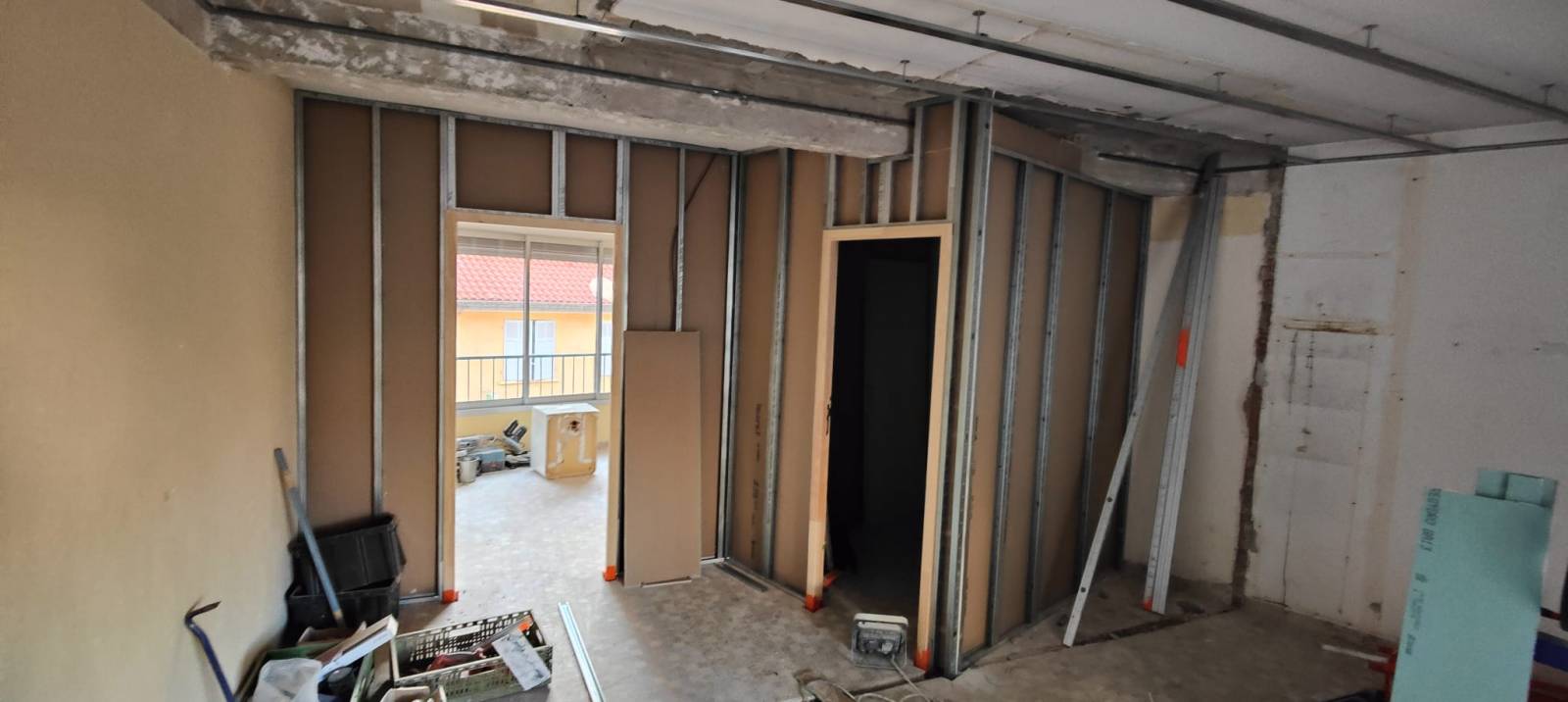 - Vissage des plaques de plâtre BA13 (hydrofuges selon les pièces)