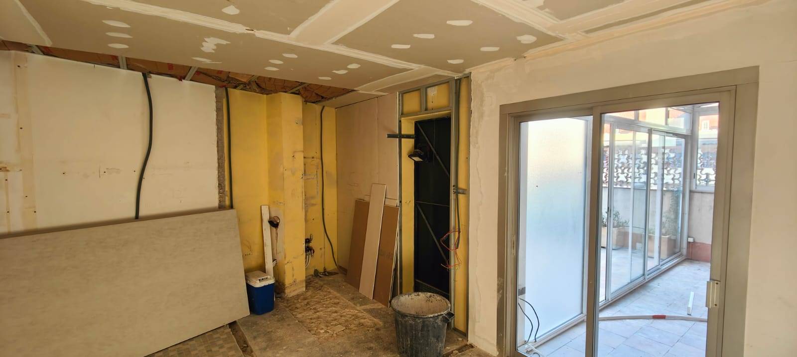- Isolation des plafonds : insertion de plaques en laine de roche