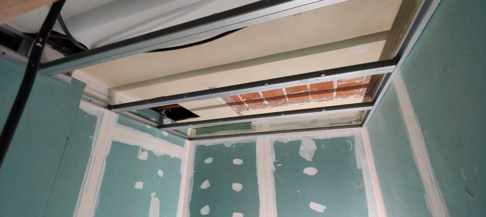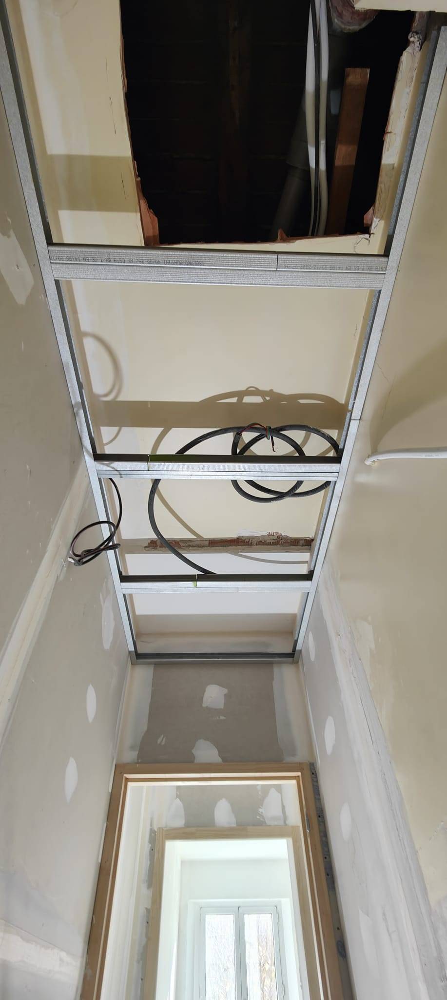 Réalisation d'un plafond suspendu intégral au 2ème étage et isolation des combles, nous voici au premier étage pour