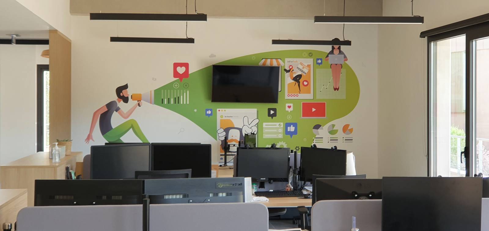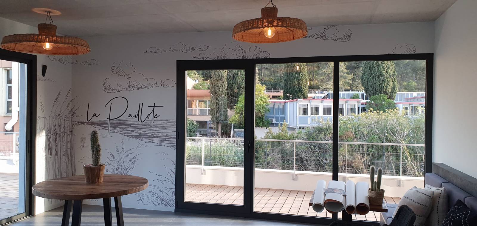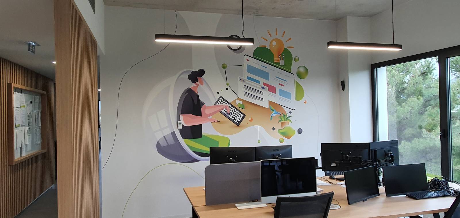 habiller les murs de ses locaux à Hyères, préférant le punch à la monotonie, pour donner du rythme, notre client a fait appel à un imprimeur spécialisé, afin de sérigraphier diverses