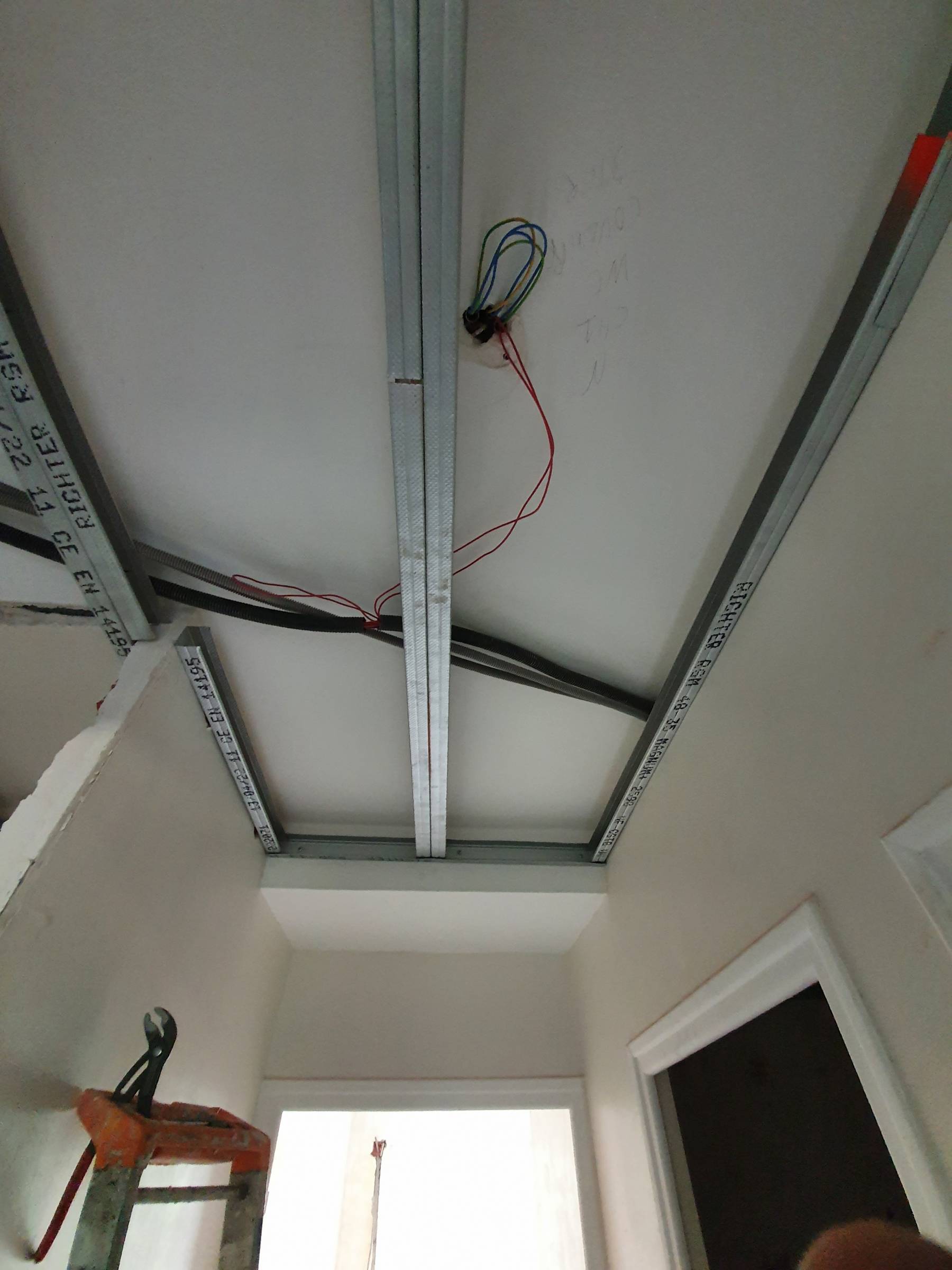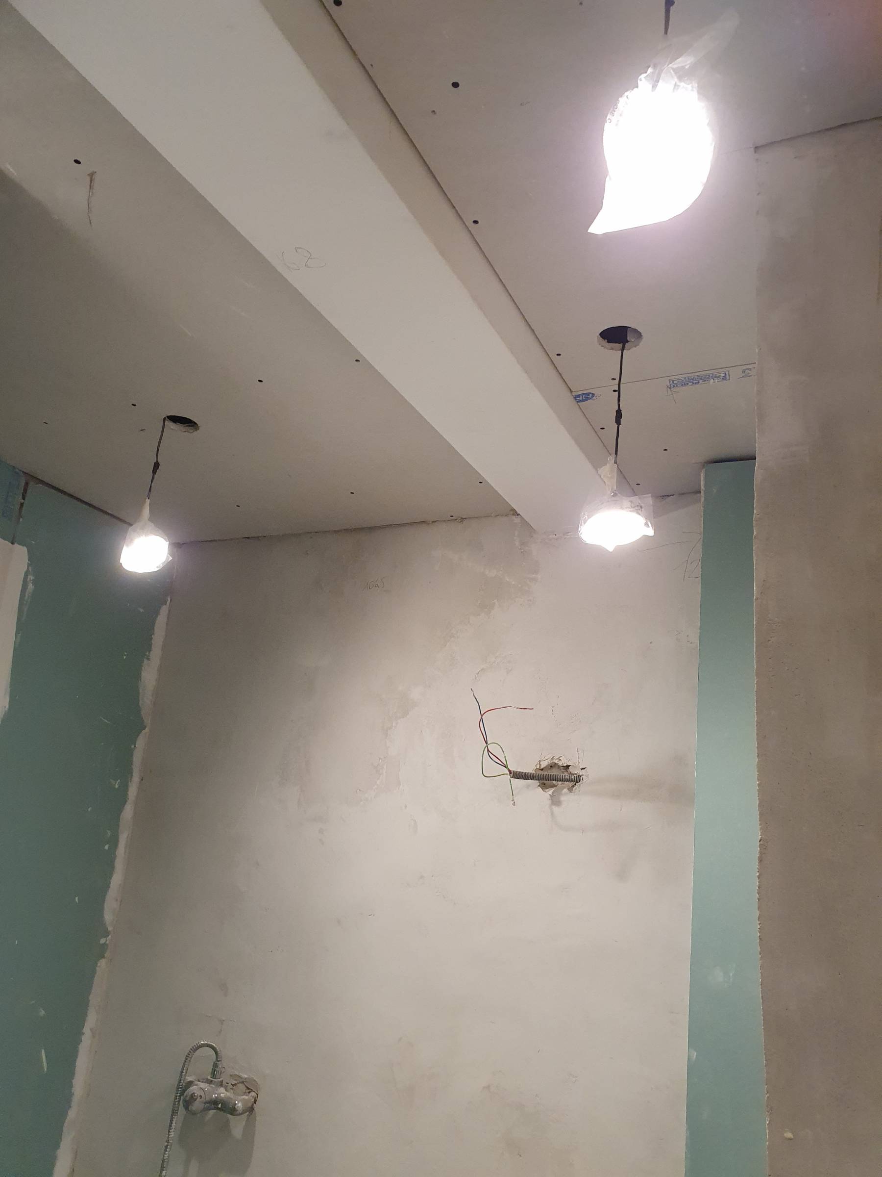 - Pose de spots dans la SDB, la cuisine et le couloir (étanches pour les pièces d'eau)