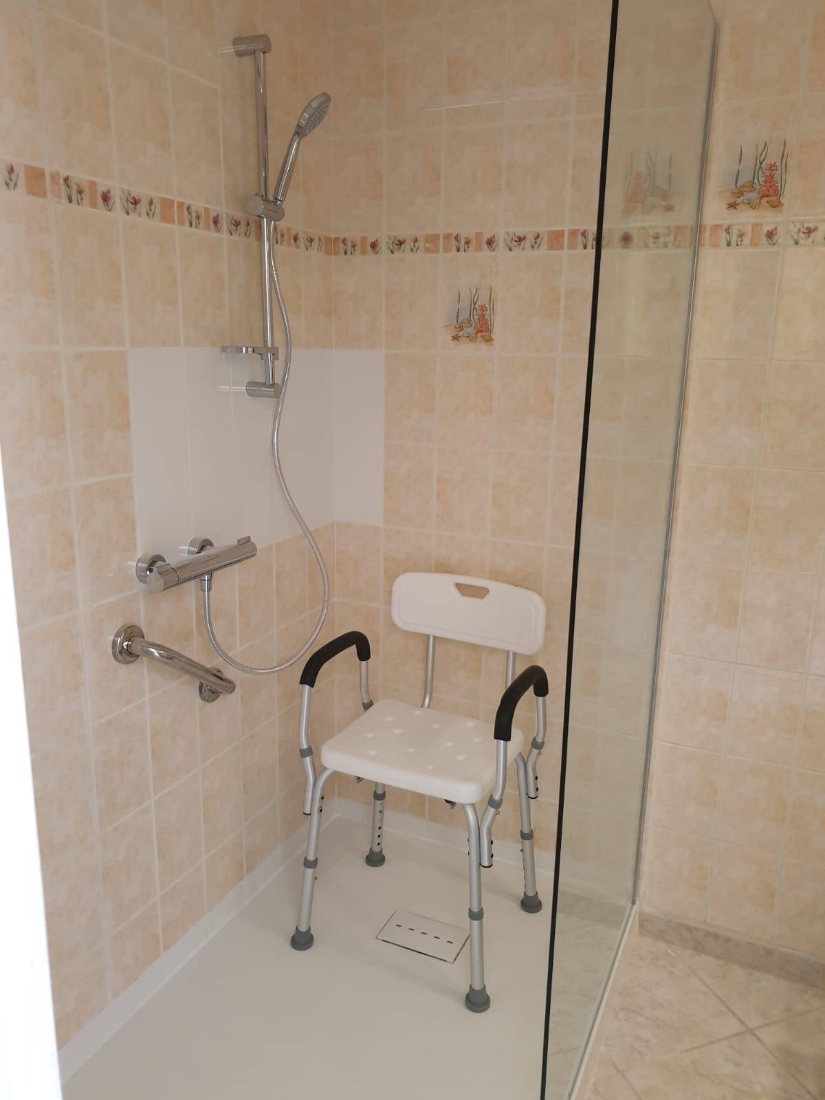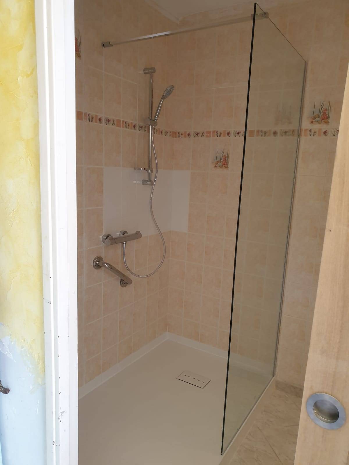Douche exigüe remplacée par une douche sécurisée fonctionnelle, offrant plus d'aisance de circulation et mouvements, pour ce faire, nous avons commencé par :