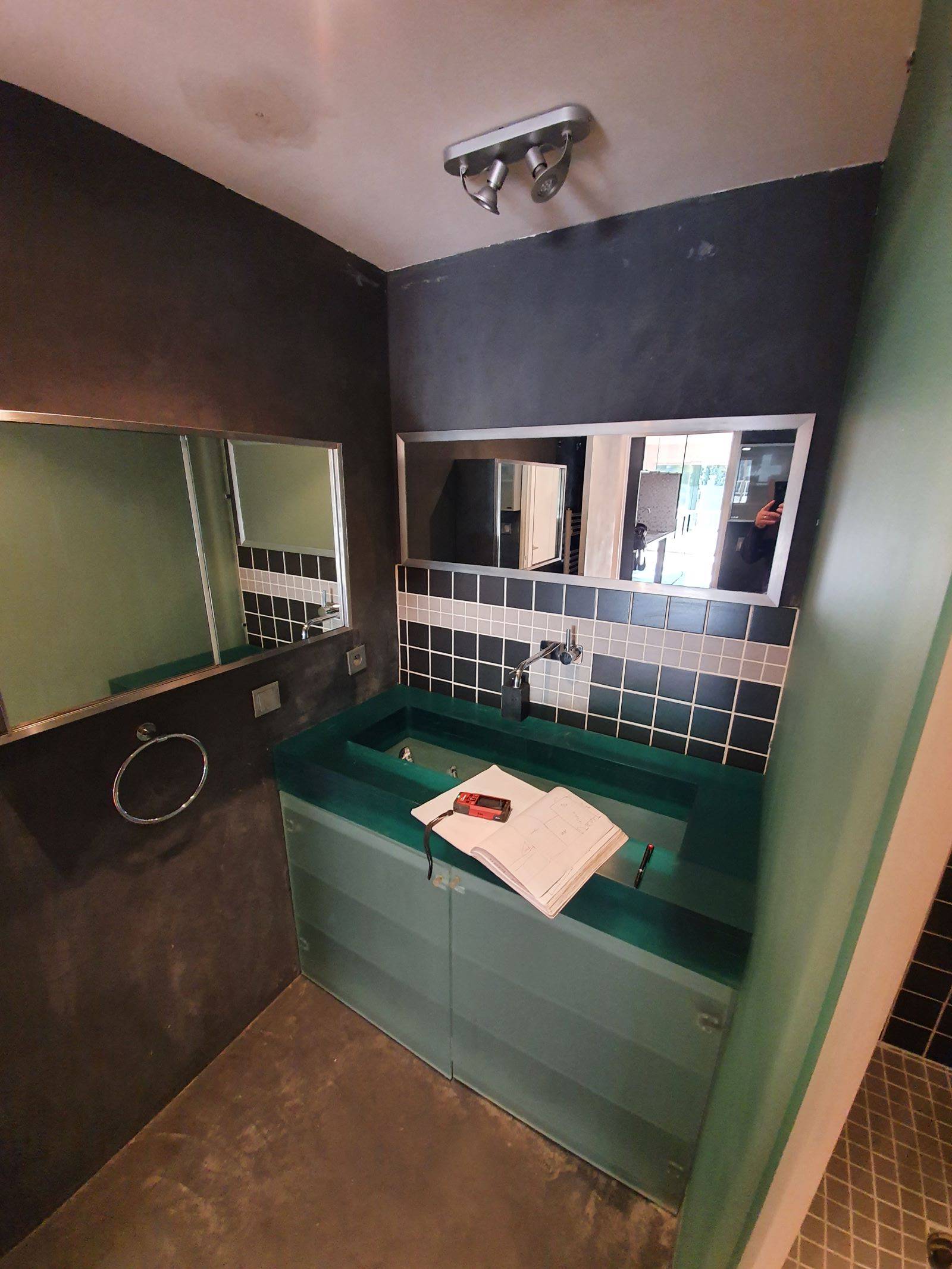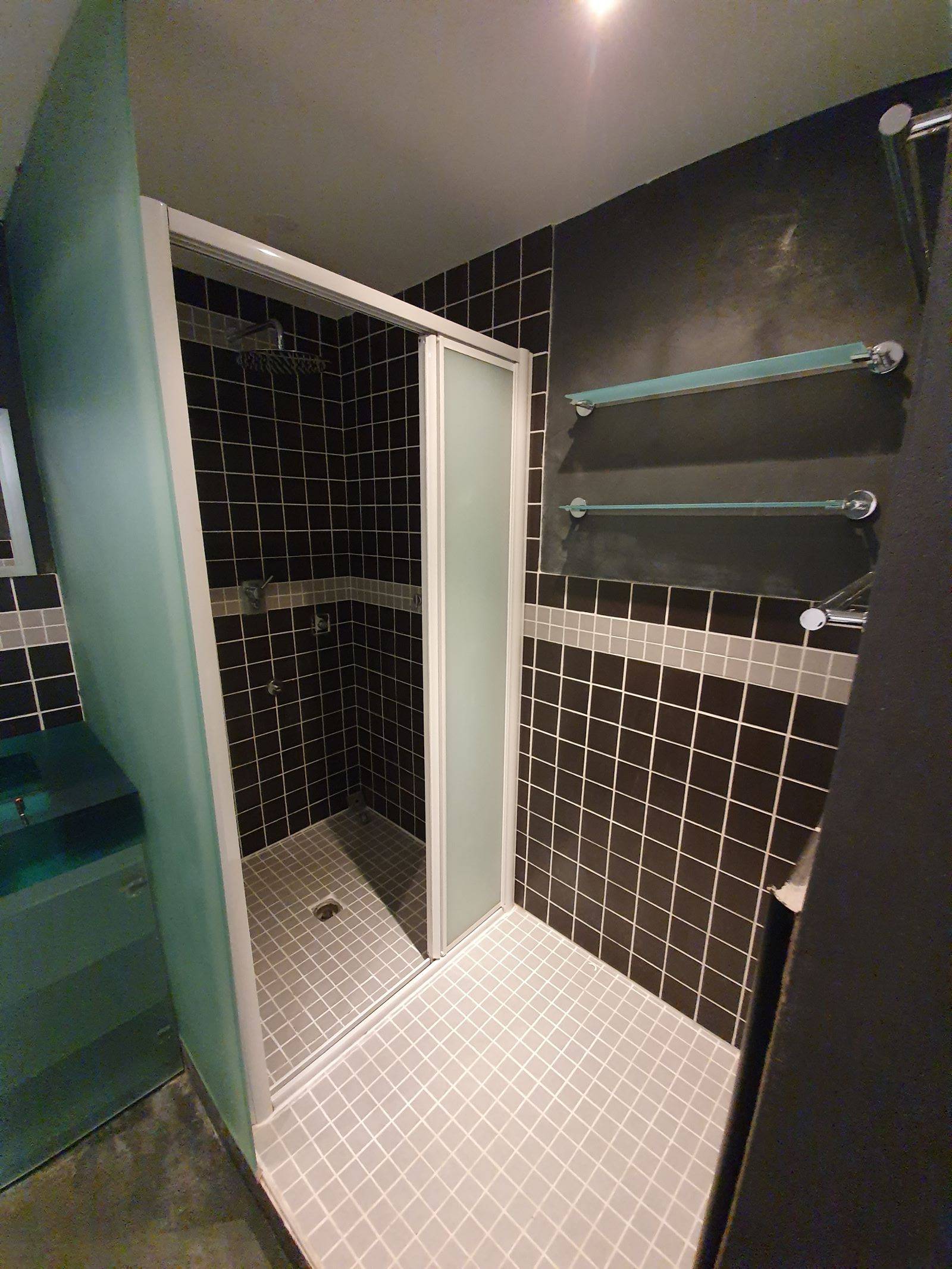 Décoration très sombre et étouffante avec ses multiples couleurs de peinture et faïence, son meuble vert et sa douche pas très engageante, le moment de casser et refaire entièrement votre salle de douche à Toulon est enfin arrivé !