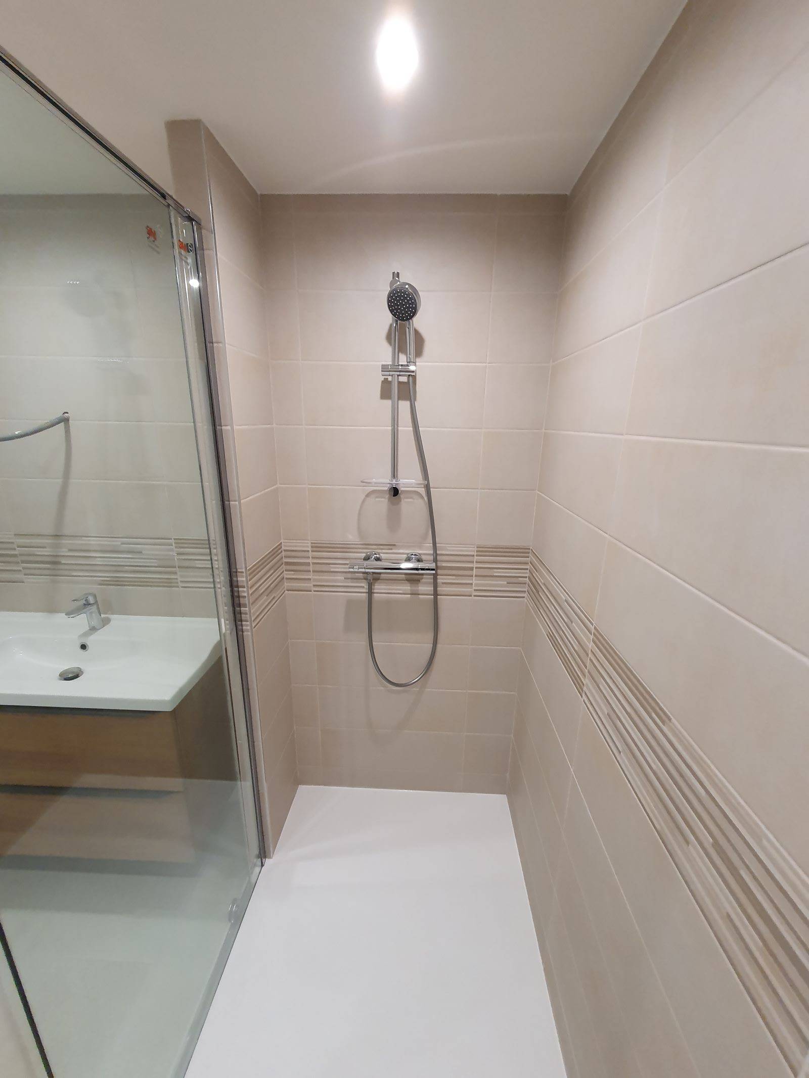 Véritable transformation en un espace de détente, clair, épuré et moderne, découvrez la rénovation de cette petite salle d'eau à Toulon, étape par étape (fourniture et pose comprises)