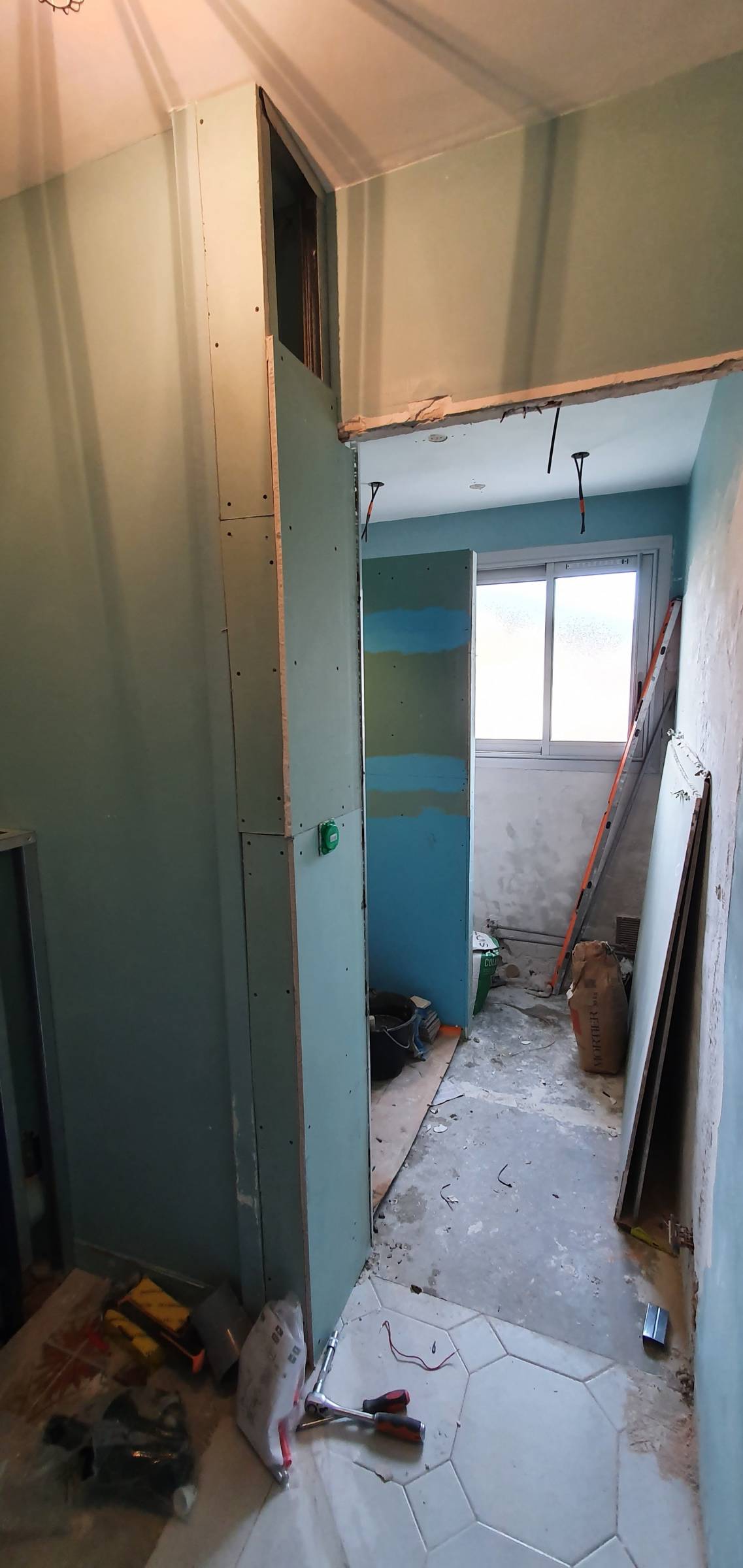 - Création de cloisons séparatives : pose d'ossatures métalliques et de plaques BA 13 hydrofuges