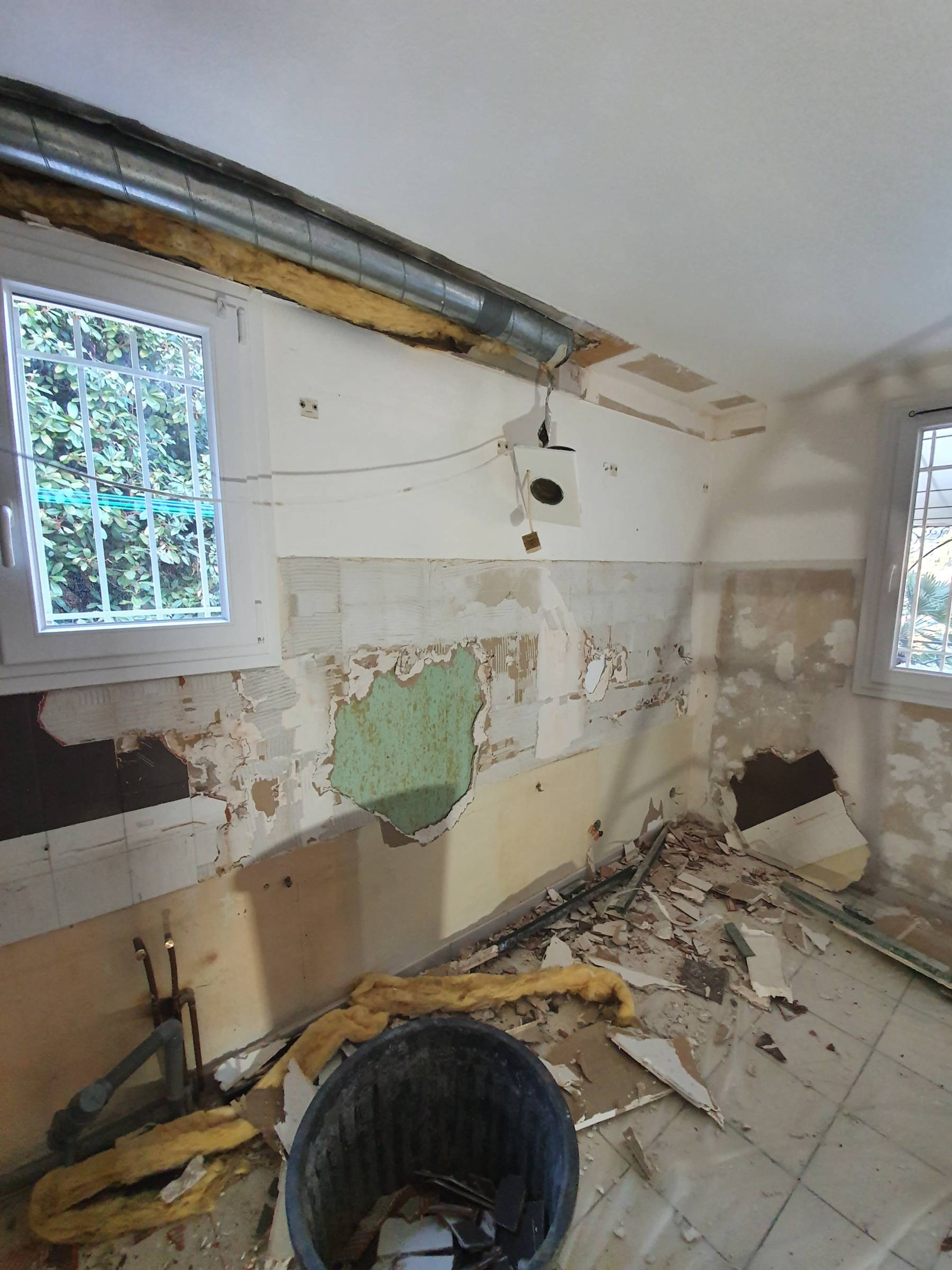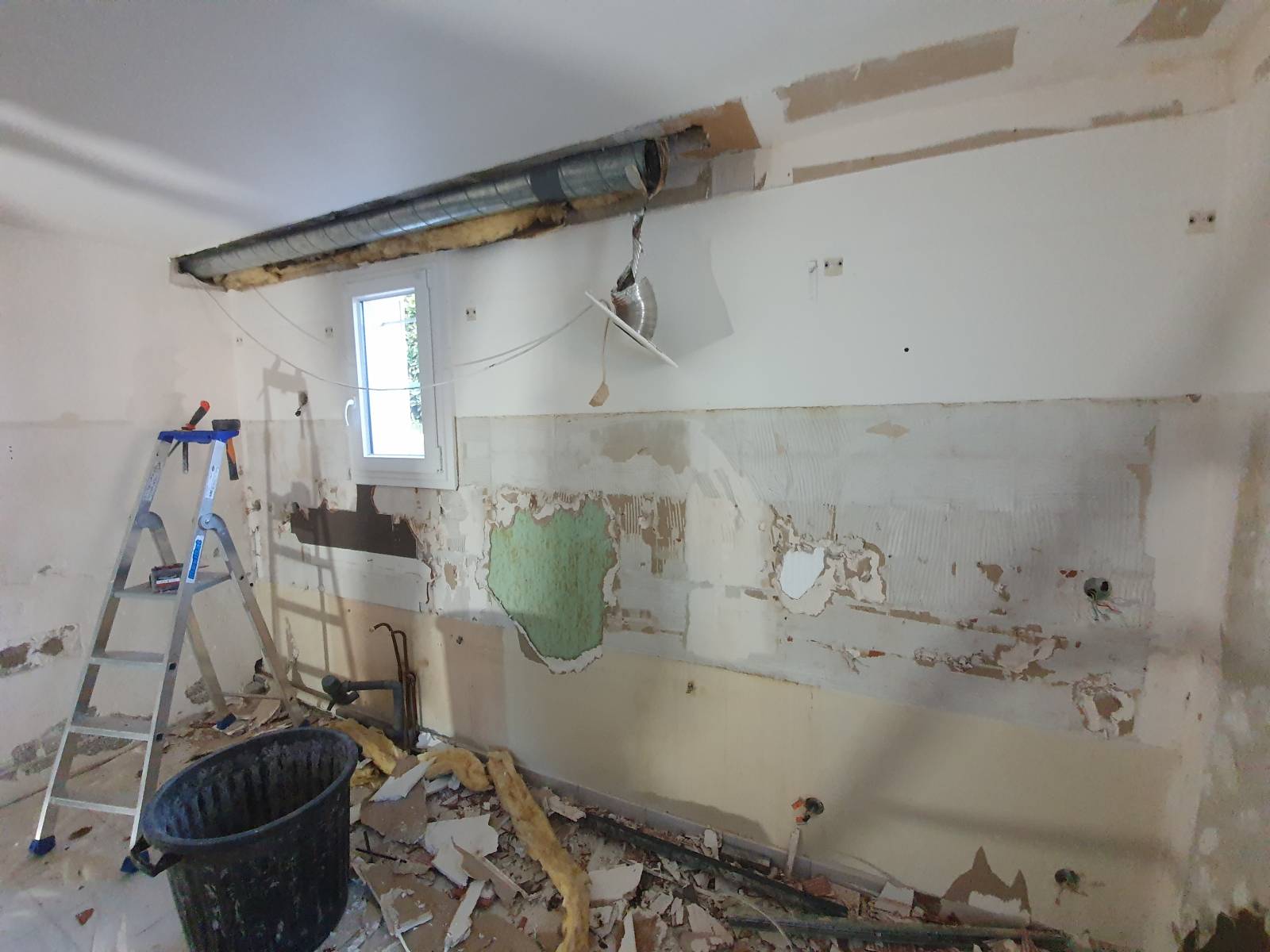 Préparation du chantier pour rénover la cuisine, en fonction du plan du cuisiniste, nous avons :