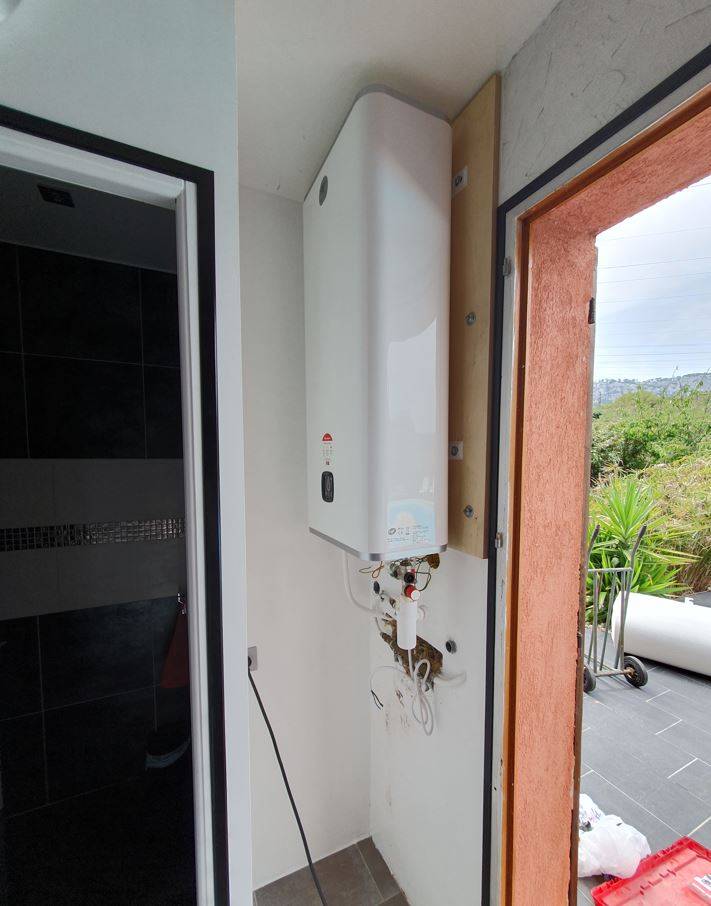 En effet, les coupures intempestives ayant détérioré la résistance, le cumulus trop ancien était irréparable. Nous avons donc proposé à nos clients de le remplacer par un cumulus Malicio nouvelle génération, efficace par sa performance et bien plus discret.